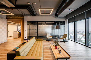 Growing companies began to look for new workspaces due to the lack of office capacity. Functional charts were created upon the demands of the company, which is defined as 'service' as a growing office, and to gather all its employees in a single office. The sales departments were separate and were not supposed to hear each other during their phone conversations. Since the open office system does not fit the working order, the spaces are separated from each other by glass partition walls. Together with our employers, who know what they want and love, a masculine style design with an industrial ceiling, far from vibrant colors, anthracite and gray tones has been created.